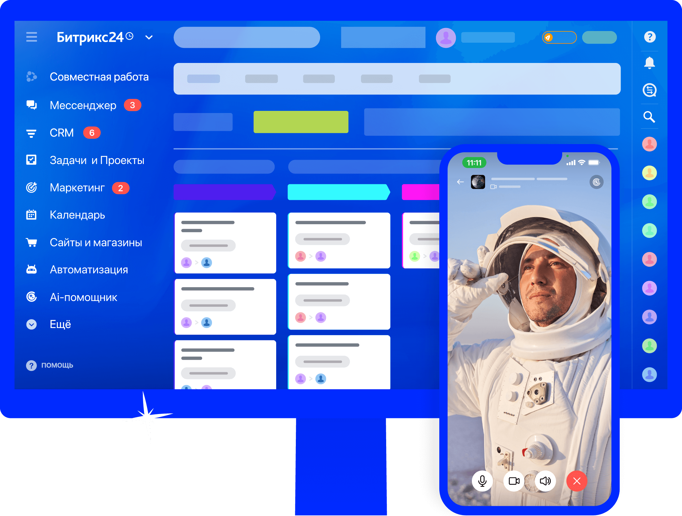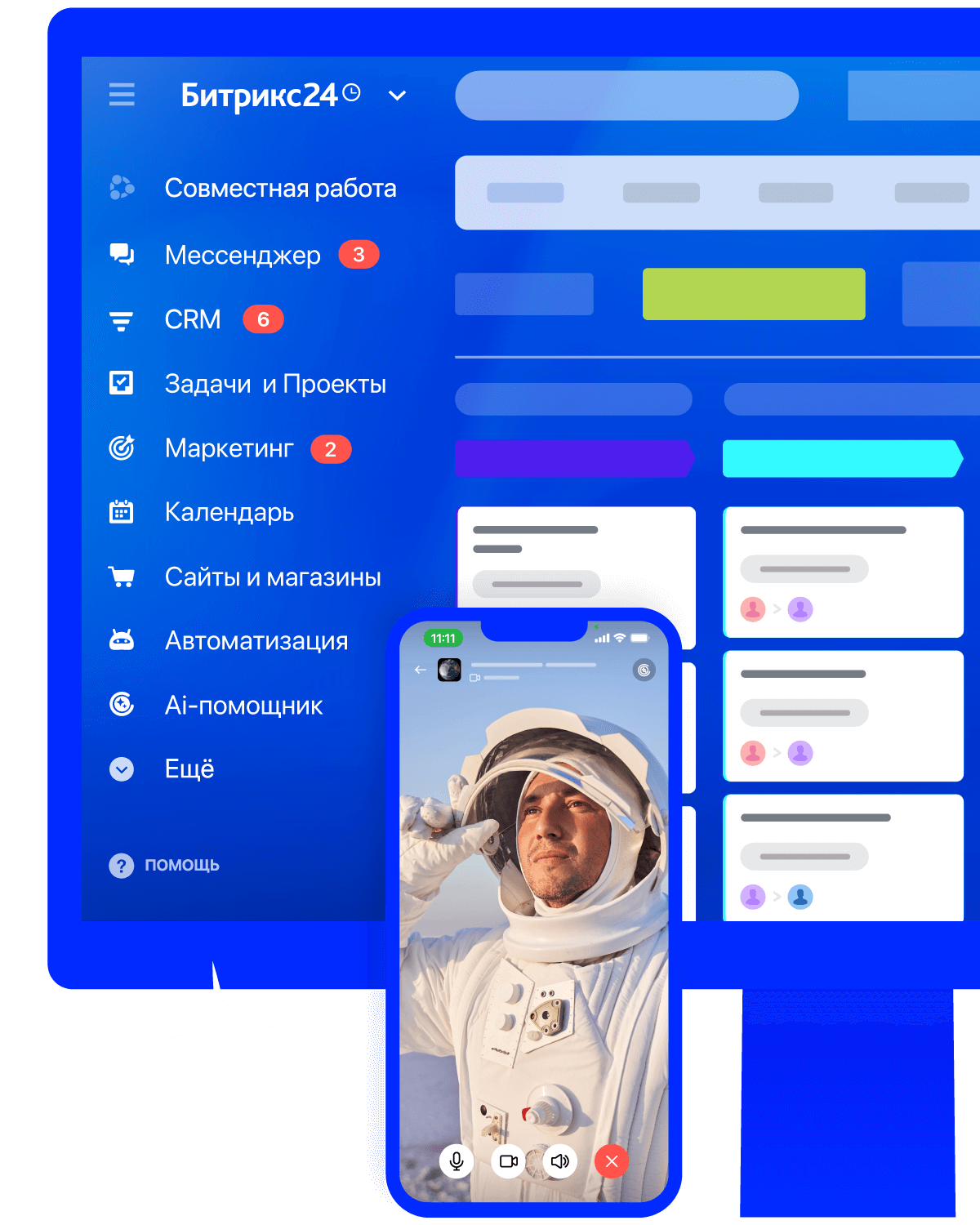 Ведите клиентскую базу, звоните и отвечайте на звонки, отправляйте письма и СМС, общайтесь с клиентами в соцсетях, мессенджерах прямо из Битрикс24. Все сделки, переписка и записи разговоров сохранятся в CRM автоматически.